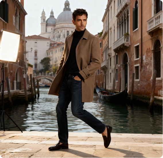 TAMI learns your aesthetic, your fabrics and your storytelling — then generates photo-realistic shootings that look like they came straight from your campaign.